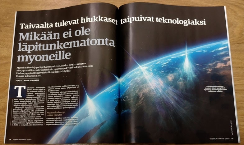In a recent interview with Tähdet ja Avaruus, the largest astronomy magazine in Northern Europe, we at Muon Solutions had the pleasure of explaining how cosmic muons are unlocking new possibilities for exploration—on Earth and beyond. It also covered the fascinating potential of muons in space exploration.